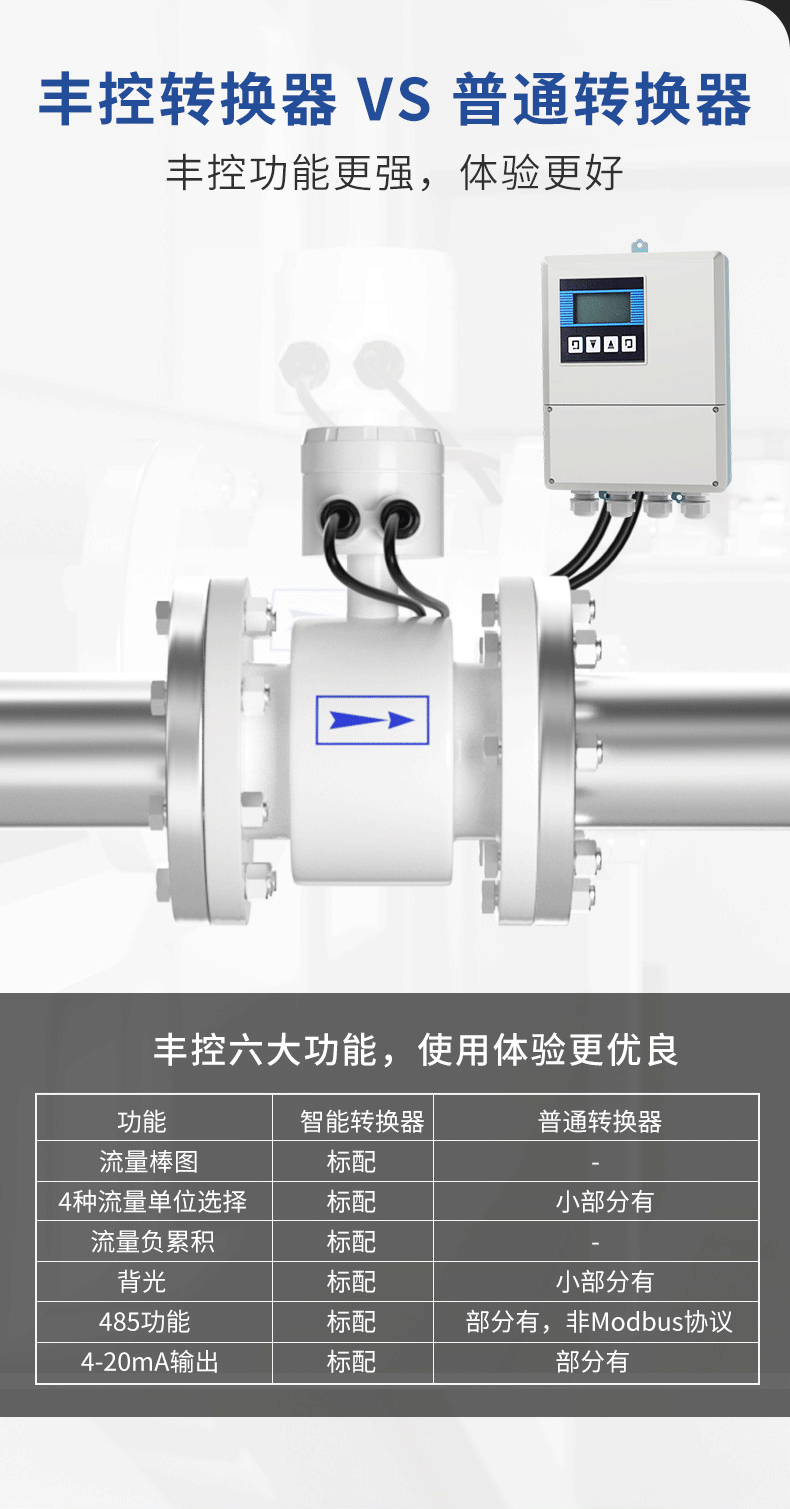 丰控分体式电磁流量计污水农田灌溉管道式传感器不锈钢流量表水表